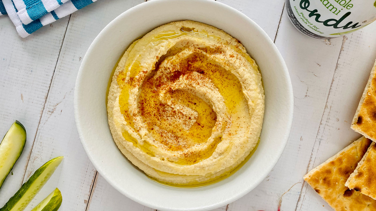 Un hummus suave, cremoso y lleno de umami. Yondu sustituye la sal y potencia el sabor natural de los garbanzos, logrando un dip más redondo y delicioso que el tradicional. Ideal para acompañar verduras, panes planos o para untar en sándwiches y tostadas.